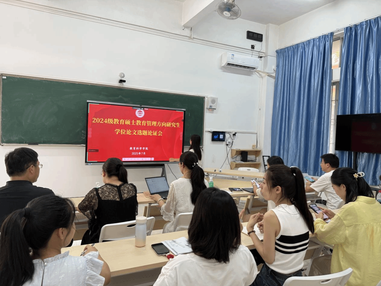 近日,教育科学学院举行2024级教育硕士(教育管理方向)学位论文选题论证会。学院全体硕士生导师及2024级6名研究生参会。