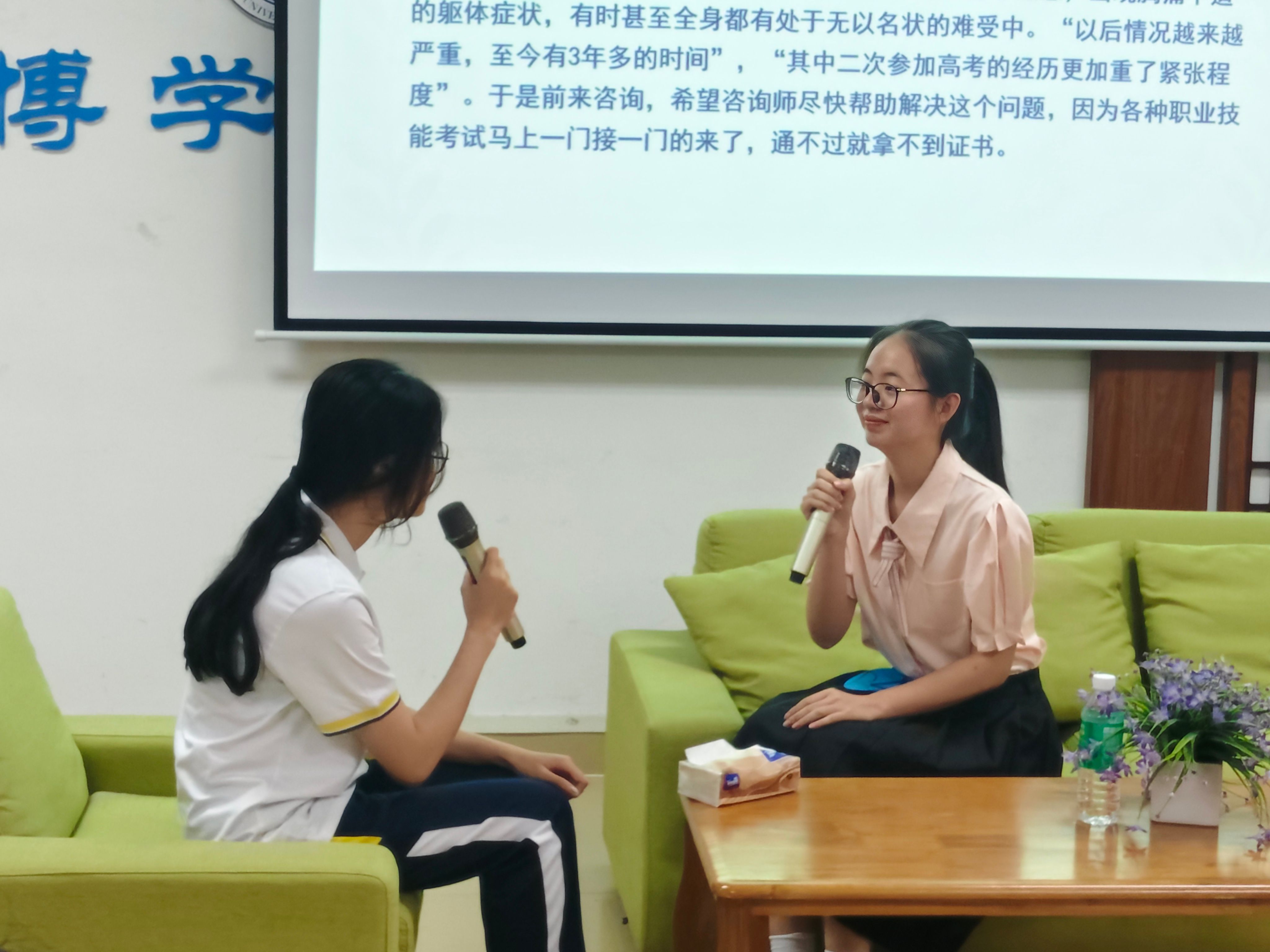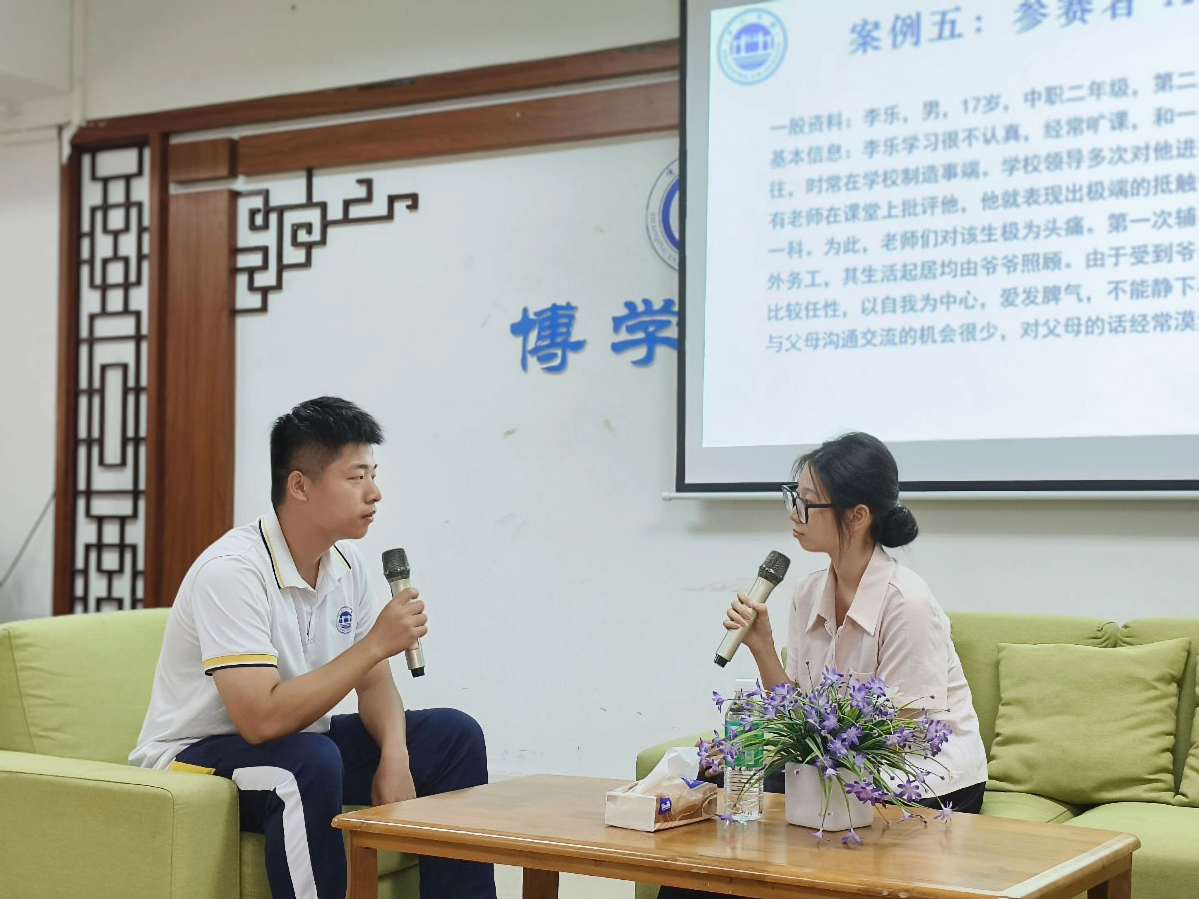 决赛采用现场模拟咨询形式,要求参赛选手在10分钟内就现场抽取的案例对来访者进行心理咨询。比赛案例紧密结合青少年群体心理发展特点,涵盖焦虑障碍、抑郁症状、社交恐惧、网络成瘾、家庭关系冲突、自我认同危机、学业压力、自杀倾向等典型心理问题,涉及情绪管理、行为干预等领域。比赛过程中,选手们凭借扎实的专业知识和出色技能,将咨询员应具备的素养充分展现,赢得评委老师一致好评,现场观摩学生也反响热烈。
