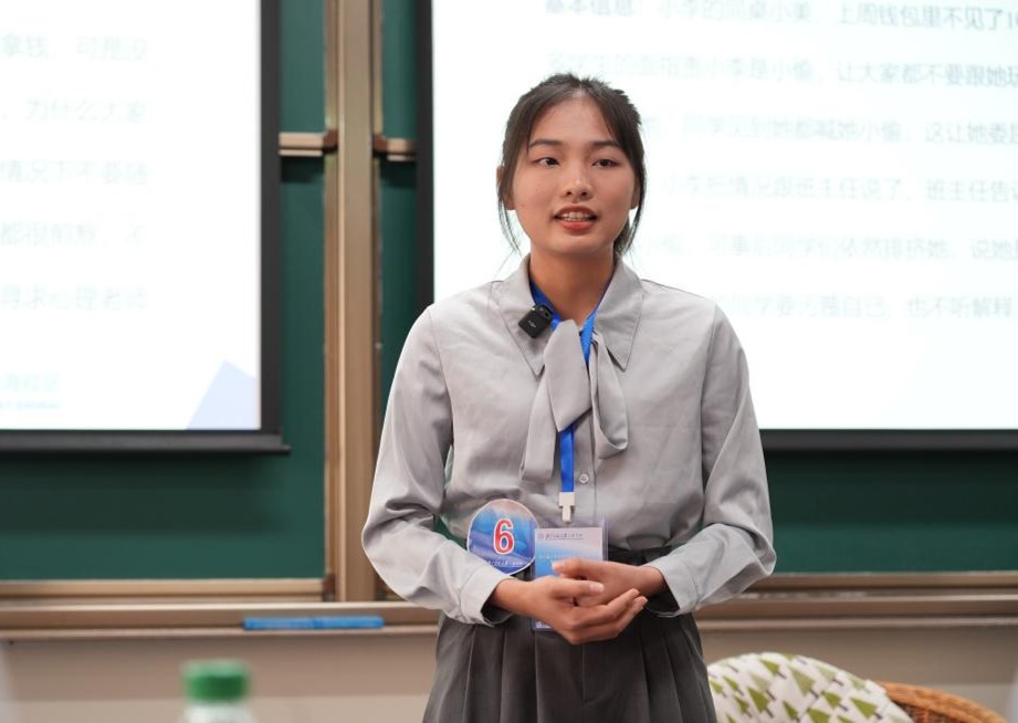 比赛内容包括现场模拟咨询、咨询思路阐述和评委提问三个环节,确保每位参赛选手在模拟的咨询场景过程中都能够充分发挥和展示自己的知识技能,大赛设立一等奖5名、二等奖7名、三等奖12名、优秀奖24名,同时另设3个单项奖:最具亲和力咨询师、最具共情力咨询师、最具影响力咨询师。我院共选拔应用心理学专业3名学生参加,最终,陈瑛琪同学(赵媚君老师、罗云老师指导)获得一等奖,莫晓月同学(唐辉老师、黄伟伟老师指导)、林银如同学(卢畅老师、霍中开老师指导)获优秀奖。