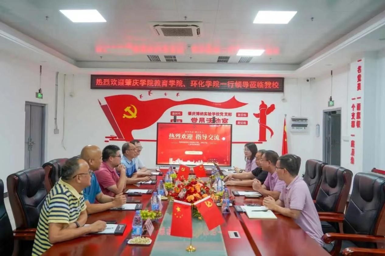 座谈期间,双方领导进行了深入交流探讨。博纳实验学校校长陈洪东介绍了该校集团的办学背景、发展历程、师资队伍建设、教育教学管理以及学校成就等,希望为双方进一步加深相互理解和合作提供了坚实的基础。教育科学学院党委书记蔡振治对博纳学校在肇庆地区民办教育领域取得的成就表示赞赏与认同。他期望双方能够坚持“以学生为中心”的教育理念,协力营造更卓越的学习氛围与成长环境。环境化学工程学院院长李湘、副院长吴贤格围绕如何深化双方合作进行了发言。双方领导均表示,希望以此次合作为契机,深化双方在教师培训、教研教学等方面的合作,为人才培养体系注入创新活力。