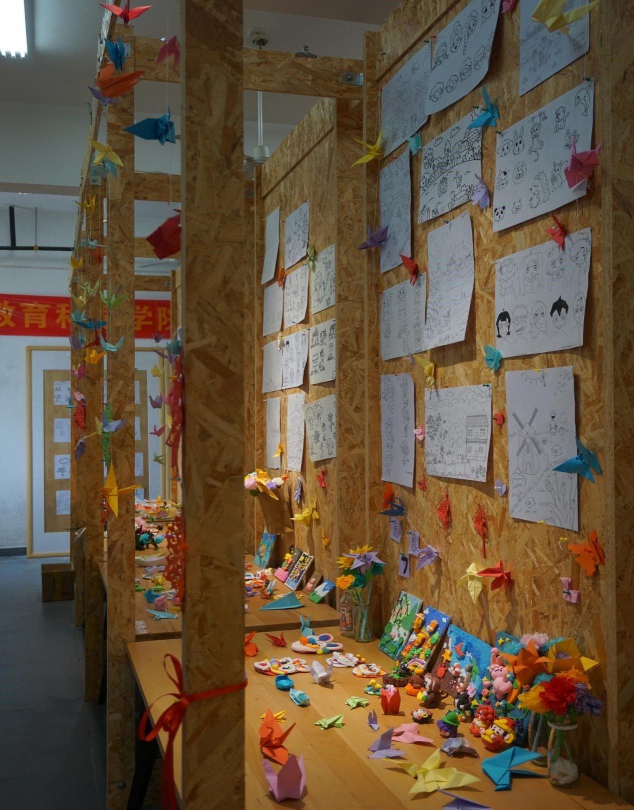 2024年6月18日,教育科学学院在艺术楼402室成功举办23级学前教育美术课程作业汇报艺术展,内容分别为简笔画、折纸、橡皮泥三个部分,旨在展现同学们在《幼儿园实用美术》以及《幼儿玩教具设计与制作》两门课程中的成果。