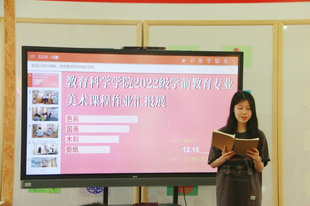 本网讯(通迅员/吴红燕 责编/何秀华)丹青吐彩,翰墨飘香。教育科学学院于2023年12月15日在艺术大楼四楼举办2022级学前教育专业美术课程作业汇报展,旨在展现同学们在《幼儿园实用美术》以及《幼儿玩教具设计与制作》两门课程中的学习成果,同时搭建切磋交流的平台。