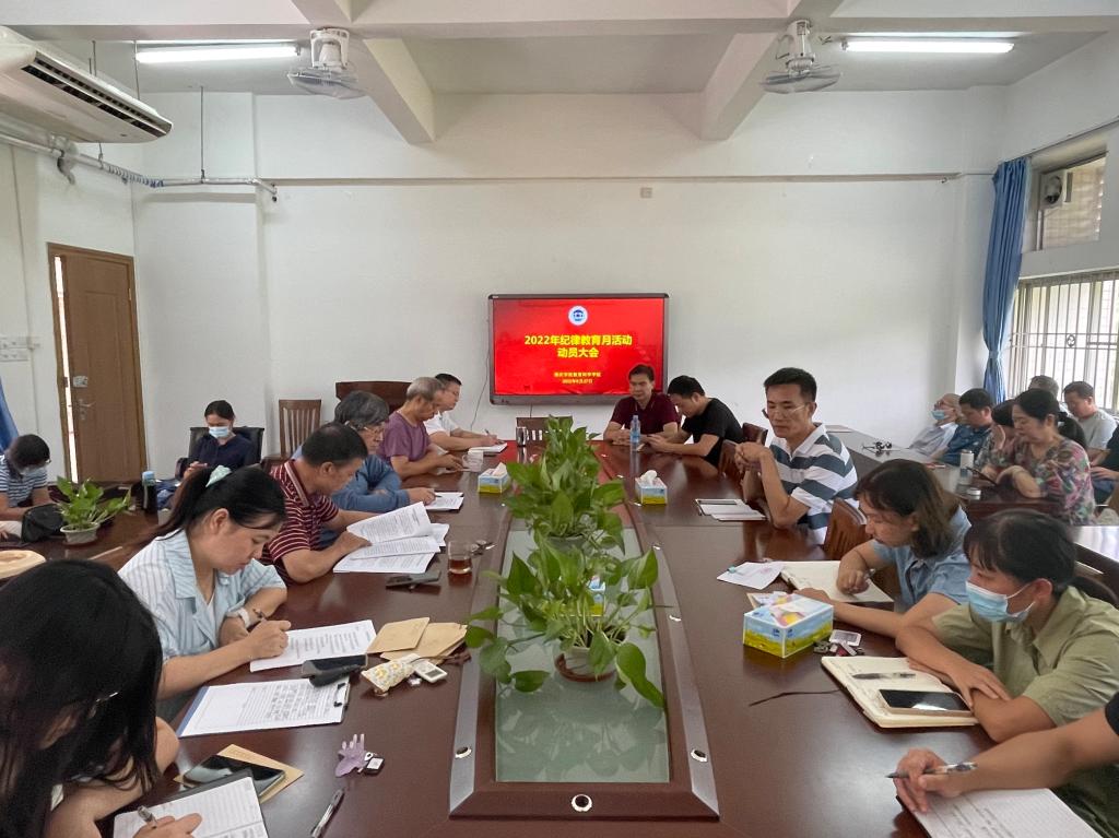 本网讯 8月27日上午,为深入贯彻落实《肇庆学院2022年纪律教育学习月活动实施方案》文件要求,我院在院办218会议室召开纪律教育学习月活动动员学习会。我院党政领导、全体教职工出席本次会议,会议由党委书记谢佐永主持。