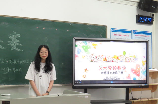 本网讯(通讯员/李丹纯)为响应国家号召,推进高素质教师队伍和精品课程建设,2021年5月26日,教育科学学院团委在主校区第三教学楼312课室成功举办了以“时代在发展,教学现创新”为主题的微课大赛决赛。教育科学学院蔡妍妮老师和王友兰老师担任本次决赛的评委。