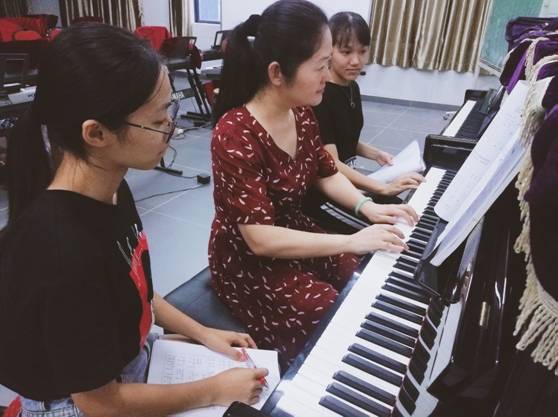 金振丽老师在对学生进行赛前指导