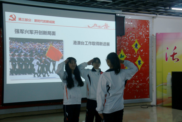 包括全体党员、入党积极分子在内217名学生报名参加了本次党史党章知识竞赛的初赛,。经过初赛的激烈角逐,最终有24名优秀的参赛选手进入决赛。决赛共分为五个环节,分别是回顾党史、党的腾飞、迈进新时代、嘉宾点评和颁奖仪式。在第三环节迈进新时代中,各个小组以中国共产党迈进新时代的新举措新变化为主题,通过朗诵、小品等形式分别展现“不忘初心、牢记使命”、 “新时代中国的变化”、 “撸起袖子加油干”、 “绿水青山就是金山银山”的理念。各个参赛小组的精彩表现,让大家眼前一亮,也从中更深刻得体会到了新时代党的腾飞。