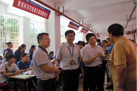本网讯(通讯员 刘晓彤)“山竹”临近,迎新密锣紧鼓。按照学校的统一部署,2018年9月15-16日,我院在主校区和星湖校区开展2018级迎新工作。迎新期间,校党委书记曾桓松、校党委副书记叶峥嵘,学生处陈向荣处长、陈玉华副处长等职能部门领导、院党委书记谢佐永、院长张旭东、院党委副书记刘远君等领导到场认真指导工作,各辅导员、带班党员、学生机构干部、志愿者们积极投入到迎新工作中。
