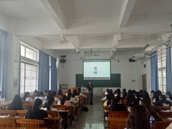 赵书栋老师为同学们开展了“让信仰点亮人生”的专题讲座,赵老师从同学们的现实出发,谈到了梦想、理想、信念和信仰。结合历史,上至圣人孔子,近至科学家钱学森等,从他们的事迹中引导学生理解信仰,领悟信仰的真谛。并指出中国共产党正是有了共产主义的信仰,才能克服各种困难,历经各种险阻,带领广大人民群众赢得了解放,建立了新中国,并引领全国人民走进新时代。最后,赵老师,希望同学们不忘初心,为了自己的梦想,为了人生价值的实现,早日加入中国共产党,为共产主义信仰而奋斗终生。