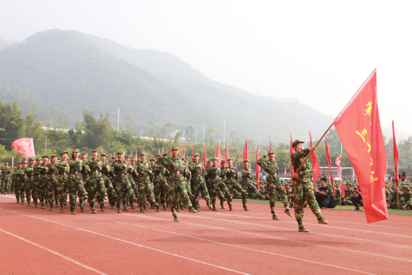 本网讯(通讯员 莫丽婷)9月30日,2017级新生军训总结表彰大会在第二田径场隆重举行。校长和飞、校党委副书记叶峥嵘、副校长周苏平、王忠、林俊睦等校领导,肇庆军分区动员处处长宁保军上校、军分区战备建设处参谋王益民少校及我校党委委员、二级学院党委书记、院长出席了本次大会。