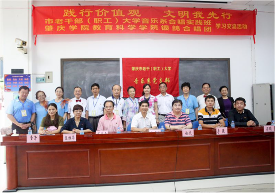 (通讯员:陈远)盛夏炎炎,无法焚去世人对进步的渴望。2017年6月7日,肇庆市老干部职工大学音乐系合唱实践班与388vip太阳集团银鸽合唱团在肇庆广播电视大学举行了一次以相互学习、共同进步、宣扬社会主义核心价值观为目的的学习交流活动,为表重视,肇庆市老干部职工大学校领导:方建生校长、石徐金校长、陈维华主任、音乐系主任童方老师以及筆庆学院教育科学学院党委徐杰书记、学院团委李巍书记、学院学前教育系副主任银鸽合唱团指挥梁琰老师共同出席了今天的学习交流活动。