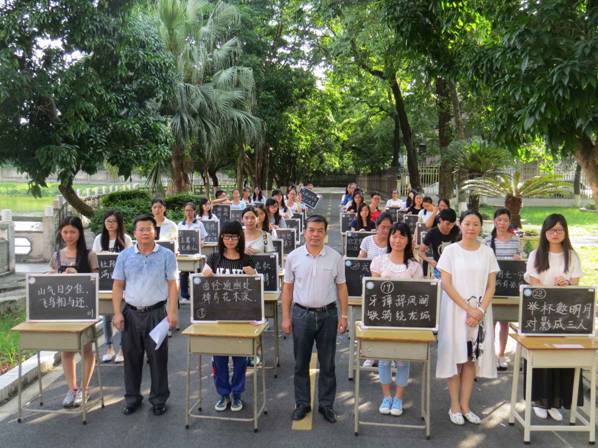 为加强学风建设,营造浓厚的学习氛围,全面推进素质教育,进一步提高学生的综合素质,由校团委主办,教育科学学院承办的“星湖杯”粉笔字大赛于201563号下午在星湖校区兰蕙湖边的校道上举行。出席本次比赛的领导有星湖校区管理办公室主任余淦新,教育科学学院党委副书记刘远君,校团委办公室主任杨琼老师等。