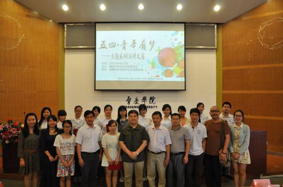 (教科院 郑敏丹讯)为纪念“五四”运动96周年,弘扬“爱国、进步、民主、科学”之五四精神,引导同学们深刻理解习近平总书记提出的中国梦的内涵,树立社会主义核心价值观,做到心中有梦,敢于追梦,并勤于圆梦,展现肇庆学院学子之风采,传递青春正能量,由校学生处律委会主办,教育科学学院律委分会承办历时一个月的肇庆学院2015年“五四?青年有梦”主题系列活动于4月25日在图书馆学术报告厅圆满结束,出席本次主题系列活动演讲比赛暨闭幕式的领导有:肇庆学院党委学生工作部部长、肇庆学院学生处处长陈向荣、教育科学学院党委书记徐杰、教育科学学院党委副书记刘远君等。