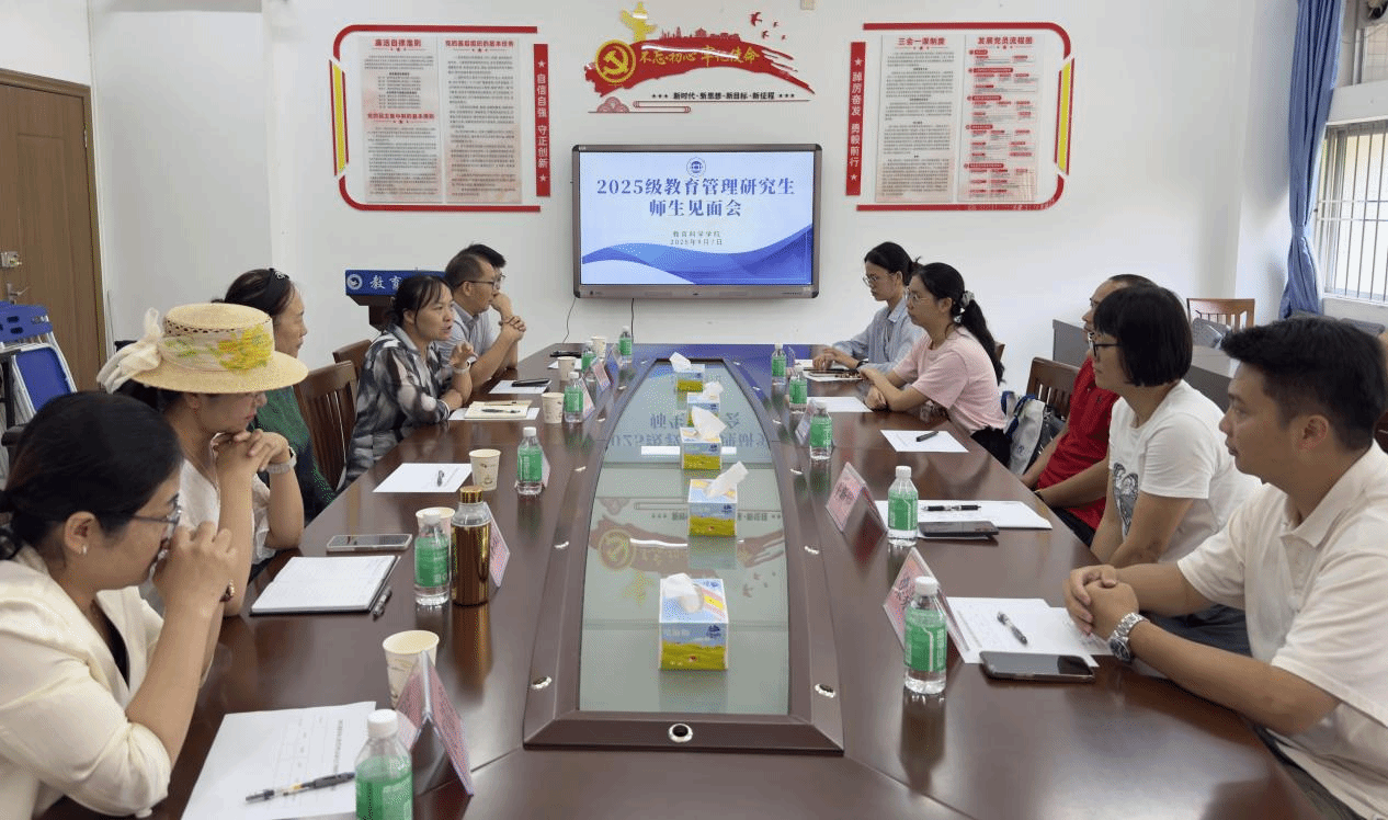 近日,教科院在218会议室隆重召开2025级非全日制教育管理方向研究生师生见面会。学院党委书记蔡振治、分管研究生教育的副院长曾苗苗、硕士生导师与2025级教育管理方向新生共同参与了本次见面会。会议围绕培养目标、学业规划及导学关系建立等进行了深入交流。