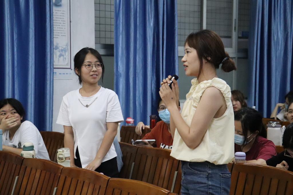 在考研经验分享环节,考研成功的同学从不同角度分享了他们的考研经验。文嘉琳详细介绍了其在备考过程中使用的学习方法,结合自身备考经历,对各科目的复习安排以及如何调整心态等方面作出了分享。李钰围绕考研遇上实习怎么合理安排复习和调剂注意事项两大方面展开经验分享,并给出了建议。