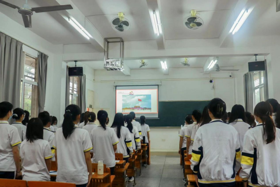 结尾时,雷瑞虹和大家再次观看了庄严神圣的升旗仪式,并引用习近平总书记的话,勉励同学们在今后的学习生活上严格要求自己,用脚步丈量祖国大地,用耳朵倾听人民的呼声,用内心感应时代的脉搏,争取早日入党