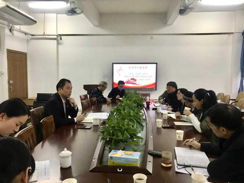 根据学校《关于做好习近平总书记出席深圳经济特区建立40周年庆祝大会和视察广东重要讲话重要指示精神暨学习贯彻党的十九届五中全会精神学习培训的通知》要求,2020年12月11日,肖起清副校长来到我院会议室,为广东省教育工委第二批“双创”工作样板支部——教育科学学院应用心理学系教师党支部全体党员开展了一次专题党课。学院党委谢佐永书记、张旭东院长、文雪副院长、李炳全副院长参加了这次党课。