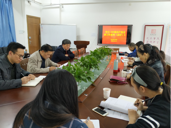 随后,会议学习了最近颁布的《中国共产党支部工作条例》,包括《条例》制定的目的、党支部工作必须遵循的原则、党支部的组织设置、基本任务、工作机制、组织生活、支委会建设、领导和保障等《条例》中的各项内容。在学习《条例》的基础上,会议进一步学习落实《肇庆学院党支部“主题党日”活动实施方案》。谢书记要求各支部书记认真研读,认真履职。