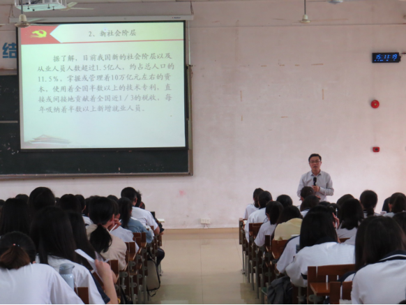 刘书记以“新时代 新青年 新担当 新作为”为主题进行授课。首先,刘书记以建国以来历代的国家领导人对青年的重视为切入口,呼吁青年一代要有理想、有本领、有担当。紧接着,刘书记提出要以优秀党员团员为榜样,并对青年团员作五点要求:要提升自身素养,在观念上领先;要过好组织生活,在活动中当先;立足平凡岗位,在工作中创先;倡导诚信做人,在服务中争先;勇挑责任担当,在学校中领先。最后,刘书记鼓励了团员们要认真学习党章和党的基本理论知识,积极向党组织靠拢,争取早日加入中国共产党,并以“不求尽如人意,但求问心无愧。没有比脚更长的路,没有比人更高的山”,来激励学员做事情要脚踏实地,勇做时代的弄潮儿。