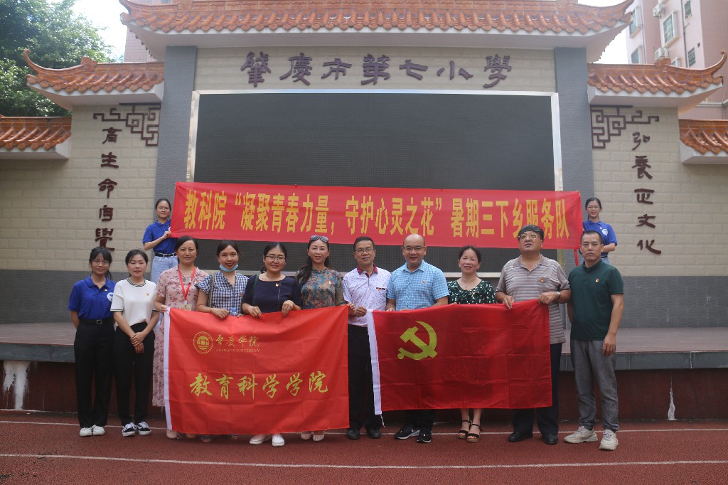 迎着大暑的烈日,伴着琅琅读书声,2020722日,教育科学学院应用心理学系教师党支部会同学院团委大学生暑期“三下乡”社会实践活动队伍,赴肇庆市第七小学开展主题为“凝聚青春力量,守护心灵之花”的“三下乡”社会实践活动。学院党委书记谢佐永、应心支部书记丘碧群、包括院长张旭东在内的支部成员及学生志愿者参加了本次活动。