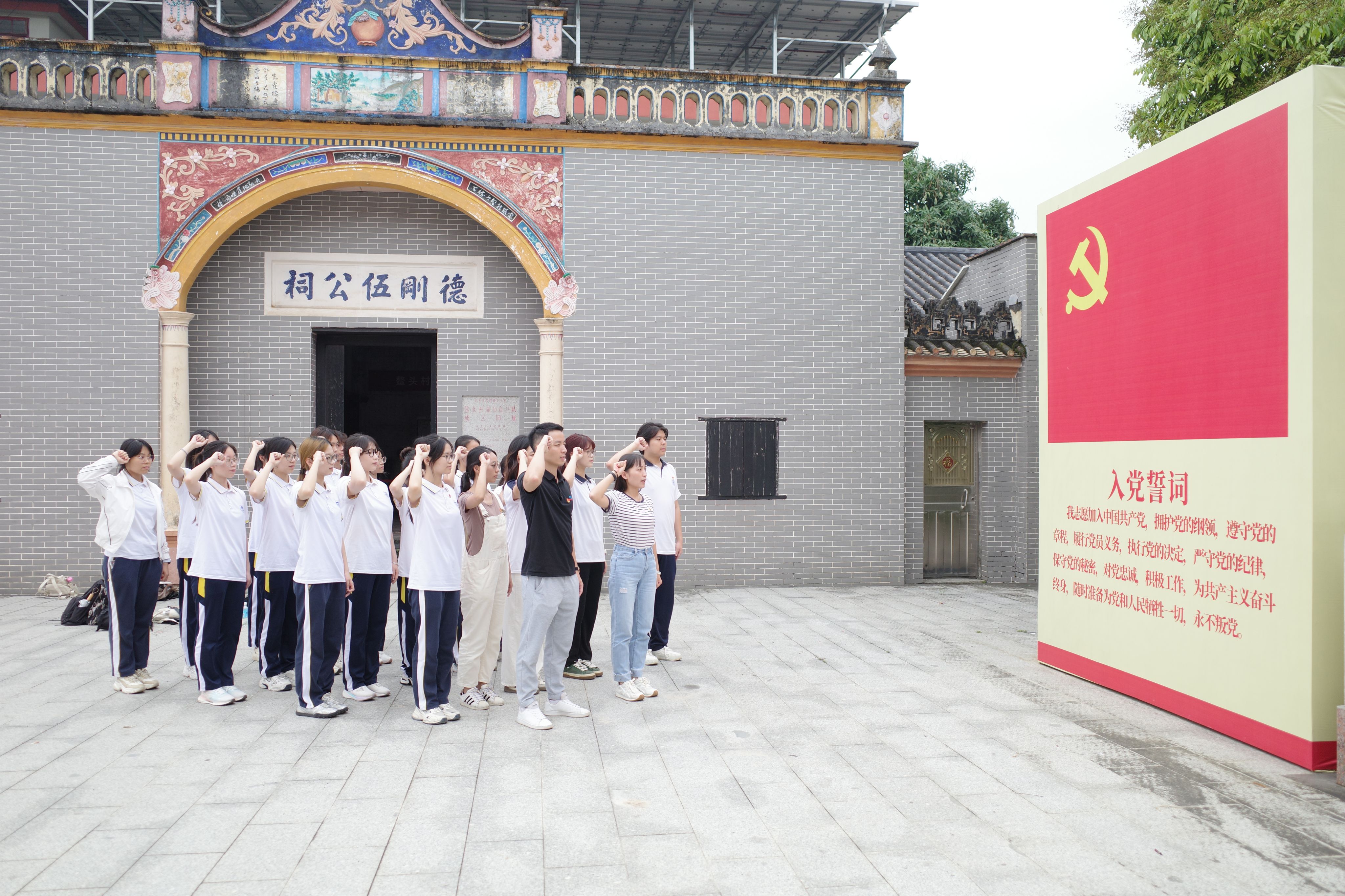 活动伊始,全体党员在鳌头烈士纪念碑前肃立默哀,向革命先烈致以深切缅怀。随后,党员们参观了鳌头村抗日自卫队成立旧址德刚伍公祠、首届高要县人民政府成立旧址朝客伍公祠等红色遗址。通过图文资料与实物,党员们深入了解高要儿女在党的领导下开展武装斗争的历史。在 “青年学习社” 旧址崇德楼,党员们感受到革命先辈追求真理、探索救国道路的坚定信念。这些红色遗址不仅是革命精神的见证,更是党纪学习教育的生动教材。