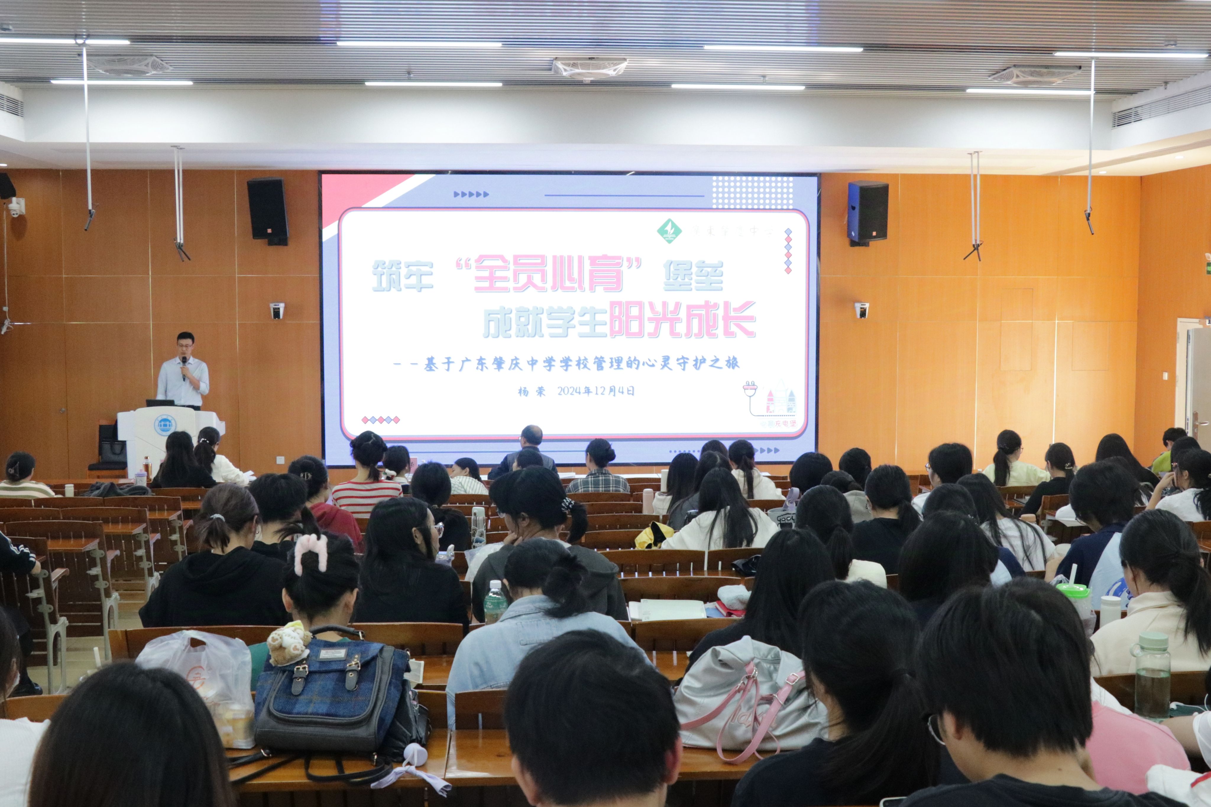 本网讯(通讯员/林莉莉 责编/陈慧妍)为培养师范生对心理教育的前瞻性思维,我院于12月4日下午在二教704室举办了一场题为“筑牢‘全员心育’堡垒,成就学生阳光成长”的讲座。本次讲座特邀广东肇庆中学校长杨荣主讲,由教育科学学院党委书记蔡振治主持。