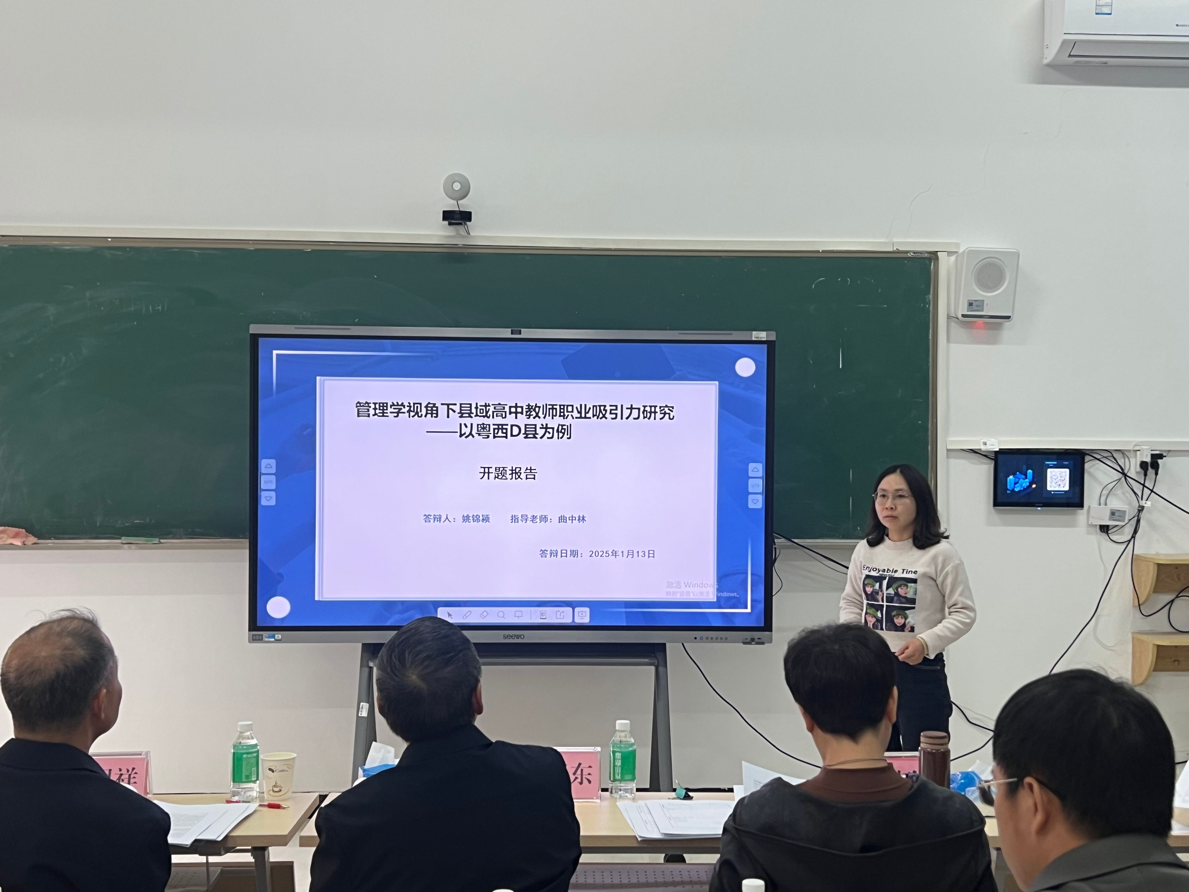 本网讯  为全面提升研究生培养质量,强化过程管理的培养理念,规范培养环节,结合研究生培养工作要求和日程,1月13日,教育科学学院成功组织2023级教育硕士教育管理方向研究生开题答辩会。