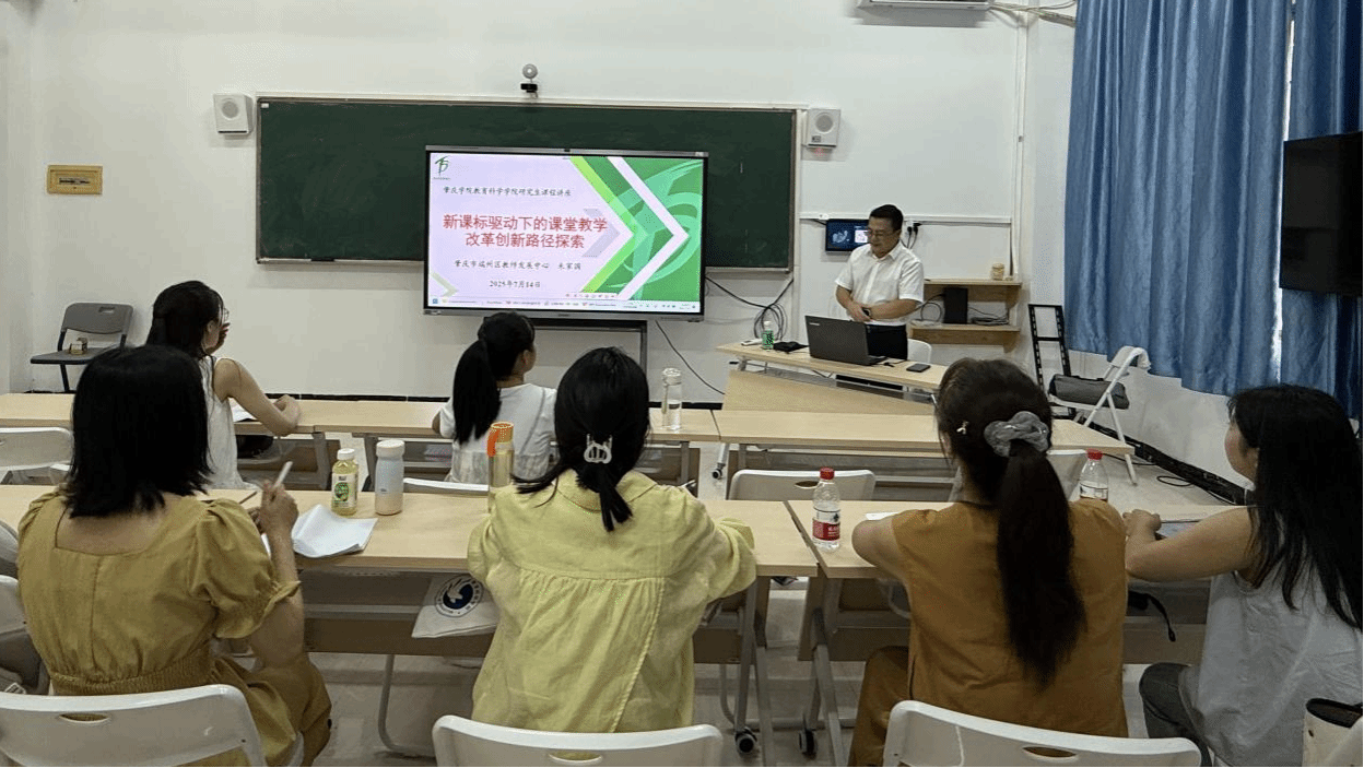 端州区教育局教研员朱家国以“新课标驱动下的课堂教学改革创新路径探索”为题,从教育管理视角阐释如何统筹推动课堂教学创新,为研究生理解教育管理在教学改革中的引领作用提供基层实践样本。