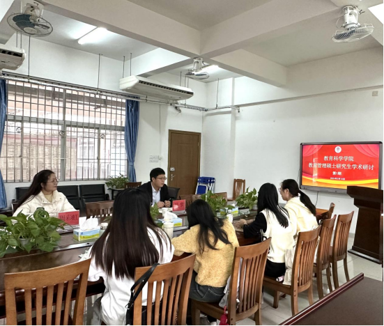 3月13日,教育科学学院举行了第一期教育管理硕士研究生学术研讨会。吴黎老师、周彩虹老师以及2023级教育管理专业研究生参与了本次会议,会议由郑文娟同学主持。