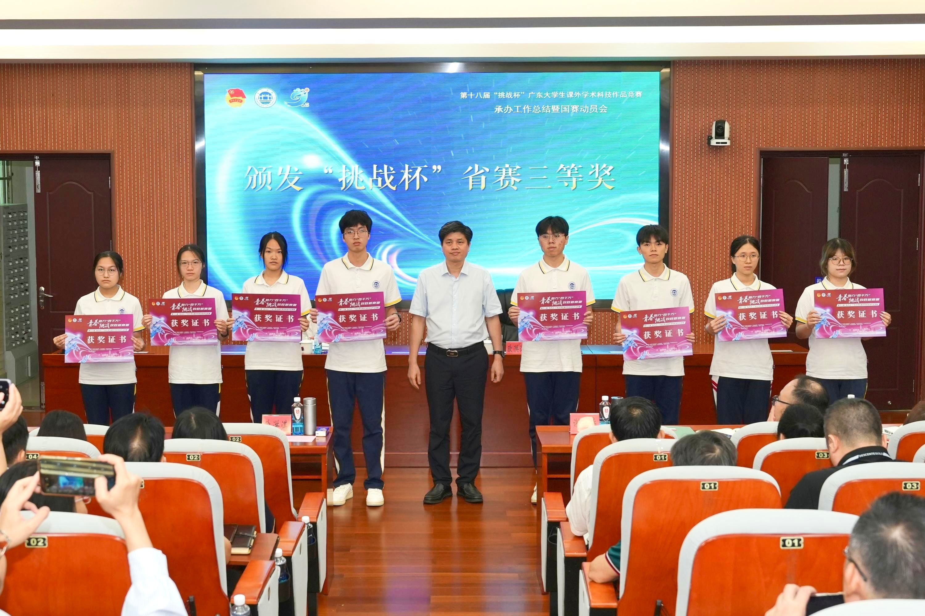 6月19日,我校召开第十八届“挑战杯”省赛承办工作总结暨国赛动员会。校党委书记谢冠华、副书记欧洪湛出席会议。各二级学院党委书记、院长、党委副书记、本次大赛筹备委员会成员、参赛队伍代表、师生志愿者及工作人员代表参加会议。我院党委书记蔡振治、特等奖项目团队代表梁嘉昕同学在会上作了项目展示。