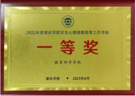 2022年度肇庆学院学生心理健康教育工作考核一等奖